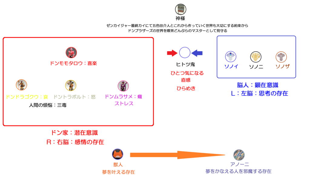 ドンブラザーズは人間の意識、思考をキャラクターに設定した作品です。